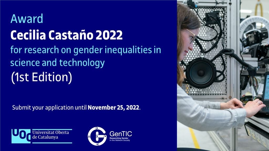 La Universitat Oberta de Catalunya convoca el Premio Cecilia Castaño con el objetivo de fomentar la igualdad de género tanto en el ámbito de las tecnologías de la información y la comunicación (TIC) como en el ámbito más amplio de la ciencia y la tecnología (STEM: ciencia, tecnología, ingeniería y matemáticas). Con este propósito, se buscan los mejores trabajos de investigación, en cualquier disciplina académica, cuya temática esté referida al estudio de las desigualdades de género en ciencia y tecnología (STEM), que aporten conocimiento relevante sobre la participación de las mujeres en ámbitos STEM.