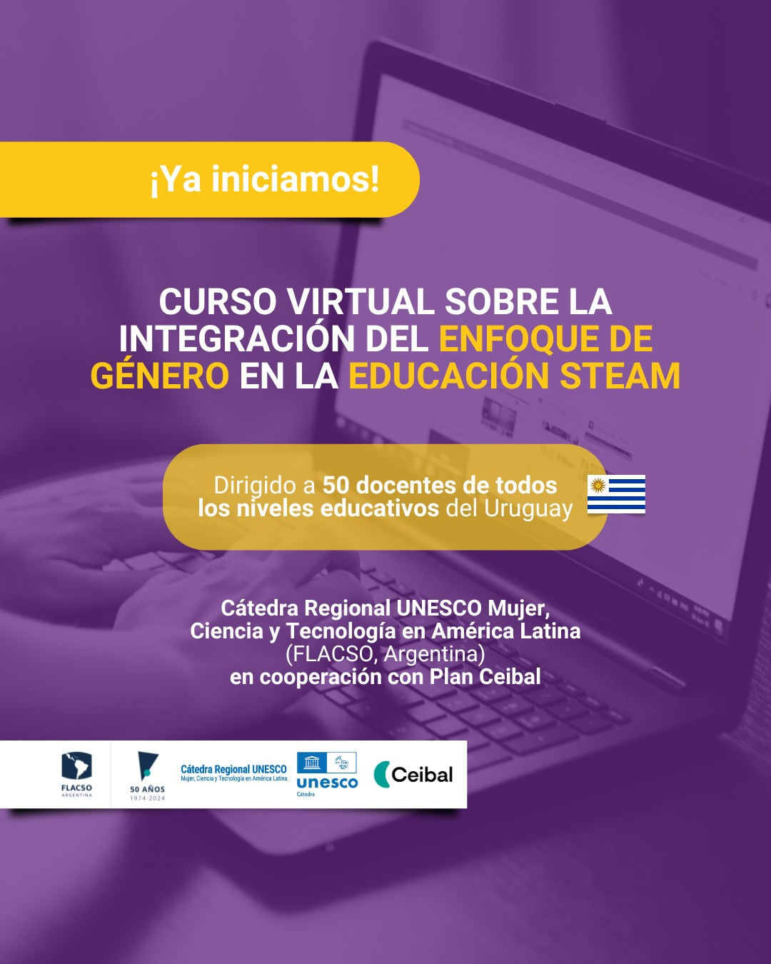 Dirigido a docentes uruguayos de distintos niveles educativos, el curso “Educación STEM con enfoque de igualdad de género” fue creado por la Cátedra para Ceibal (Urguay). Se realizaron dos ediciones que tuvieron como principal objetivo promover el interés y el desarrollo de competencias para planificar, implementar y evaluar proyectos/programas en educación en STEAM que integren el enfoque de igualdad de género.